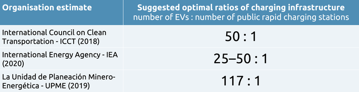 By contrast, a 2019 study commissioned by the planning arm of the Ministry of Mines and Energy recommended a ratio of EVs to public rapid charging stations of 117:1, assuming widespread access to home and workplace charging under future development.