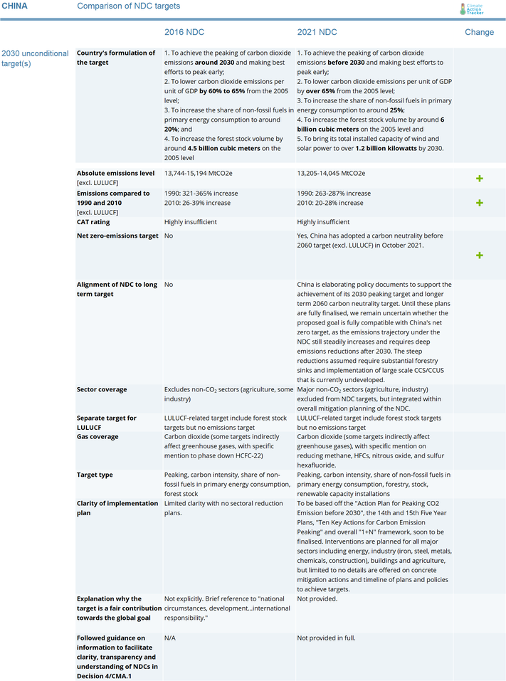 Scroll down for a detailed analysis of China’s NDC update or click the button to view the latest CAT assessment for China.