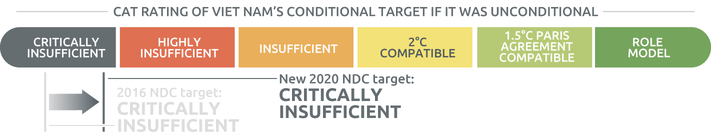 Viet Nam submitted its updated NDC in September 2020. While numerically stronger, it can still be easily met with current policies and will not drive further climate action. We therefore do not consider Viet Nam's target to be stronger than the previous one.1 The CAT rating remains unchanged as ‘Critically Insufficient’. The transparency and sectoral coverage of the NDC has improved.