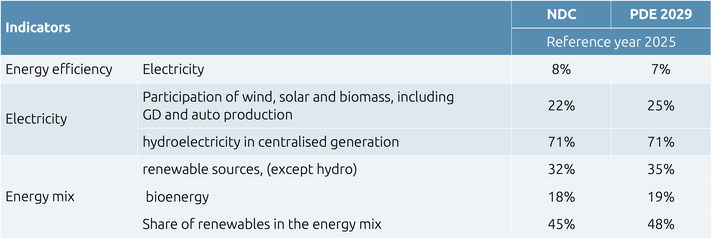 Brazil will need to implement additional policies to meet its economy wide NDC targets, but is well on track to meet its energy sector NDC targets according to the Ten Year Plan (Ministério de Minas e Energia – MME, 2019), as shown in the table below.