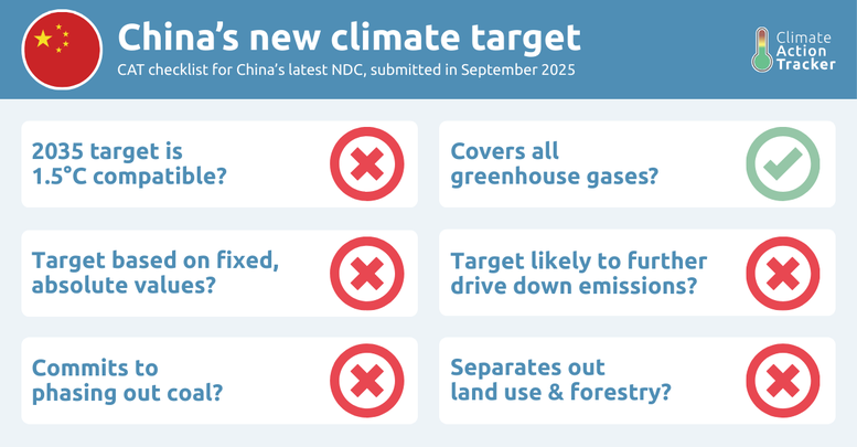 China has not yet submitted their 2035 NDC to the UNFCCC. Once the new NDC has been submitted, we will publish our assessment here.