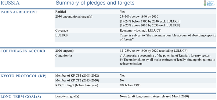 NDC update: In November 2020, the Russian Federation submitted an updated NDC. Our analysis of its new target is here.