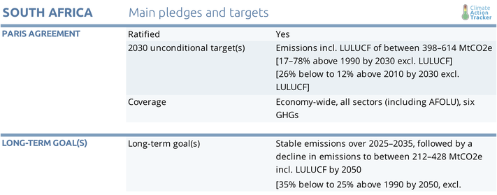 Although South Africa is one of the few countries that has put forward absolute emission reduction targets in their NDC, we still rate this target “Highly insufficient”.