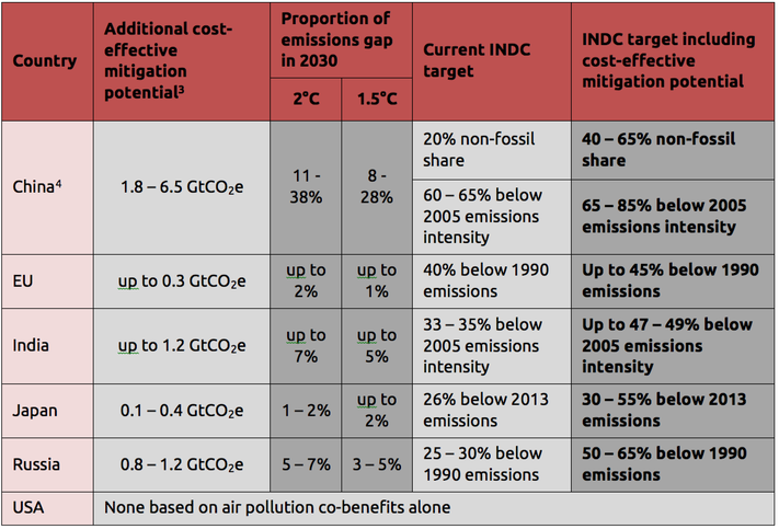 - Without incurring a net economic burden, most major emitters could strengthen their INDC targets: