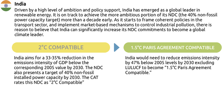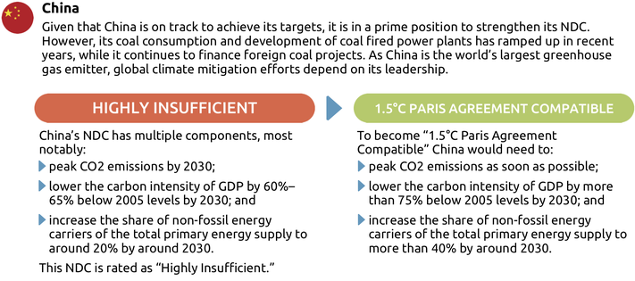 While pursuing a 1.5°C compatible pathway is what is needed to avoid the climate crisis, the CAT has also provided two other benchmarks for 2030: how to move up one level of our rating and the “current path” for further comparison.