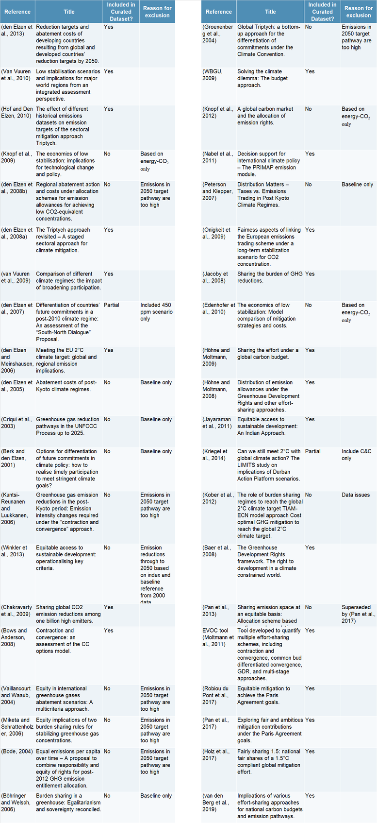 - van den Berg, N.J., van Soest, H.L., Hof, A.F., den Elzen, M.G.J., van Vuuren, D.P., Chen, W., Drouet, L., Emmerling, J., Fujimori, S., Höhne, N., Kõberle, A.C., McCollum, D., Schaeffer, R., Shekhar, S., Vishwanathan, S.S., Vrontisi, Z., Blok, K., 2019. Implications of various effort-sharing approaches for national carbon budgets and emission pathways. Clim. Change. https://doi.org/10.1007/s10584-019-02368-y